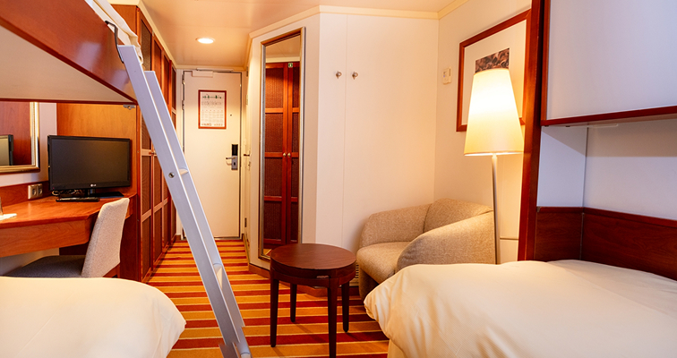 Eğlence dolu bir günün ardından sade bir konfor sunan en bütçe dostu kamaralardır. Kabine bağlı olarak alt yataklar, çekyatlar ve ranzalar ile 4 kişiye kadar konaklama imkanı sunarlar.